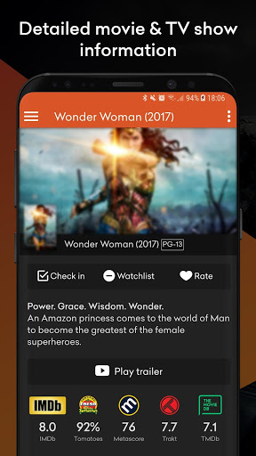 This app displays film and television show data provided by Trakt.tv (https://trakt.tv/terms), OMDb API and Fanart.tv. This product uses the TMDb API but is not endorsed or certified by TMDb. (https://www.themoviedb.org/terms-of-use, https://www.themoviedb.org/documentation/api/terms-of-use). Images in the screenshots have been blurred to comply with Google Play Store policies.