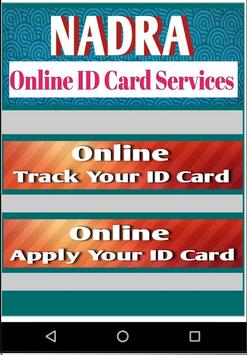 Track Your ID Card Online. You can also apply for your id card online but this is available for pc now. Its mobile update is coming soon. but still you can learn the whole process for online ID card application. The data in this app is not owned by us. It is taken from Nadra website . heres the link to NADRA website