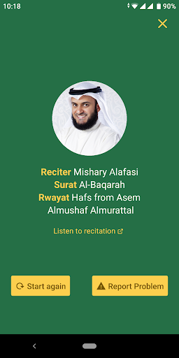 Nadyy provides details of Quran recitation you listen to within seconds. Including: reciter name, surah (chapter) name, and rwaya (narration). All you need to do is to record a short audio clip through the App.