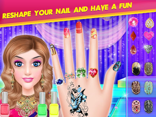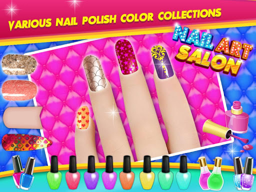 Discover all trending nail art designs, Plenty of fancy nail polishes, different nail shapes, Various types of brushes show your nail artist skills by creating fabulous nail designs in just a few steps in one of the top trending manicure games on the market! Bring out your creativity in one of the best “Nail art salon: manicure girl games” ever!