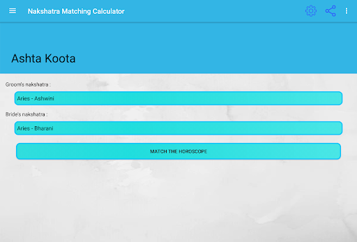 This Nakshatra Matching Calculator app contains 8 porutham matching method followed by north Indian astrology are