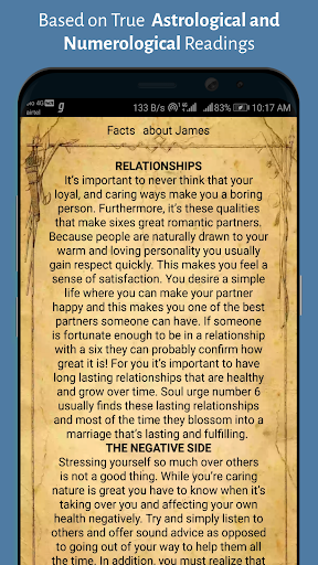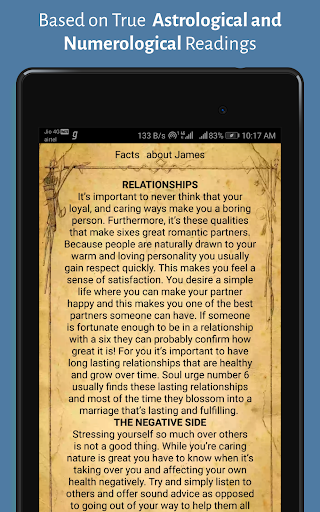 Ask yourself what does your name say about you. Do you like the answer? Maybe you do, but what if you don't know the whole “secret of your name”? No need to wonder, because you can easily find out the true “meaning of your name and birth date” with "Name facts-Astrology meaning of your name” wonderful explorer app! It is surely the best names meaning app you can find! Discovering “the essence of a name” is not only fun, but important, especially if you are looking for some good names of girls or names of boys for your baby! Names and their meanings can easily define our lives, so choosing the right one for our child is a matter of the utmost importance! People often like some names in style, but the traits they carry may not be what you want. Remember, how we are named is how we are treated! This “Name facts-Astrology meaning of your name” will certainly help you narrow your choice in the easiest possible way!