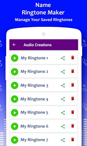 Not only your name You can create ringtone using any names. you can make it as your incoming call ringtone. All your creations are saved in your Creations.