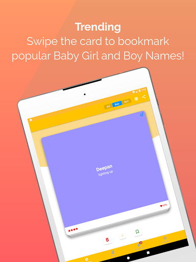 Namly is a baby name app. It is for baby girl names and baby boy names. It helps parents to choose the right name for their baby. It shows girl and boy names with their meanings in alphabet order. It has Gender and Origin options to filters the names. You can swipe cards from trending names to move it into your bookmark list. Every card gives an idea of how significant the name is popular right now so you never miss the best trending names. It has a Bookmark feature to add favorite names to the bookmark list. It gives options to share favorite names with friends and family members. The app is completely free.
