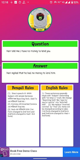 When we express someone’s words in our own words, it is called – “Indirect Speech” and when we express someone’s words as it is, it is called – “Direct Speech“.“Narration Change App" is an application with more than 3000 exercises. Narration Change App It is based on direct and indirect speech examples with answers.