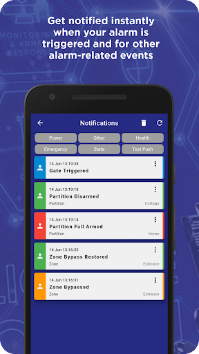 - Receive alerts when the alarm is triggered and know where on your property the intrusion occurred