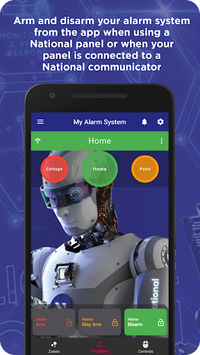 - Arm, disarm or stay arm different areas of your home as set up by the technician