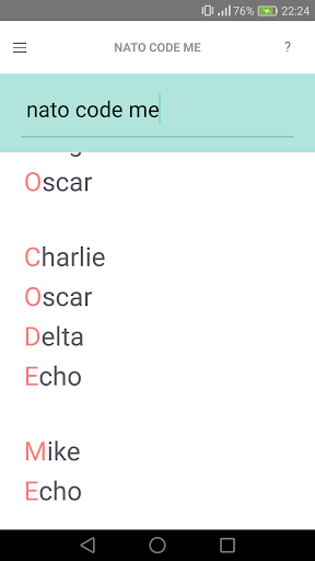 Simple app that can help you by converting any word into NATO phonetic alphabet.