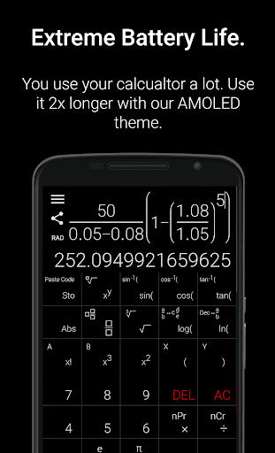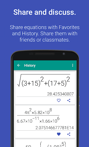 Other apps make you enter equations on a single line like something from the 1970s. Our Natural Input solves this problem by allowing you to enter equations as you'd write them on paper, using fractions, roots, exponents and more. It's called a "natural display" and is a common feature on scientific calculators and we've finally brought it over to Android!