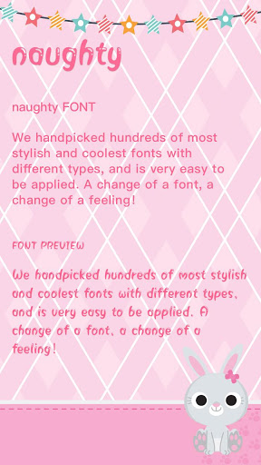 Naughty allows all users to change the system font of your phone or tablet 👌. Supported for devices which have FlipFont™ (Samsung Galaxy S3, S4, S5, Note, Note Ⅱ, Note Ⅲ) to change fonts perfectly or root access. This is absolutely the best installer FlipFont for android!