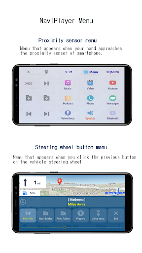 NaviPlayer menu display or voice recognition using proximity sensor.