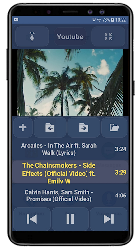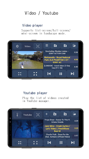NaviPlayer supports music, video, YouTube, and Podcast player.
