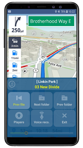 NaviPlayer is a car media player that lets you launch and control media player on top of navigation while the navigation app is running in the front.