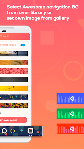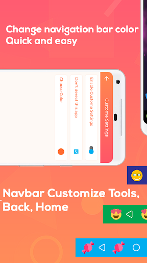 Navigation Bar - Navbar Customize Tools, Back, Home offers the use one perticular color for navigation bar,also having options to show image on navigation bar with your way.this app also provide you to options like ...show battery percentage on navigtion bar,add emojis to your navigation bar,and also this app will show music bars while music is playing.This Navigation Bar - Navbar Customize Tools, Back, Home bottom navigation bar to easily use it. The navigation bottom is back button for touch mobile.