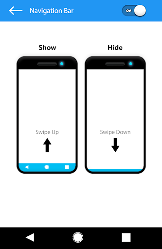 Touch control to use all the navigation bar menu in your mobile screen renders full ease and access. Simple swipe to show and auto hide the navigation bar. Change background colors and button type to completely customize the navigation bar back, home and recent button.