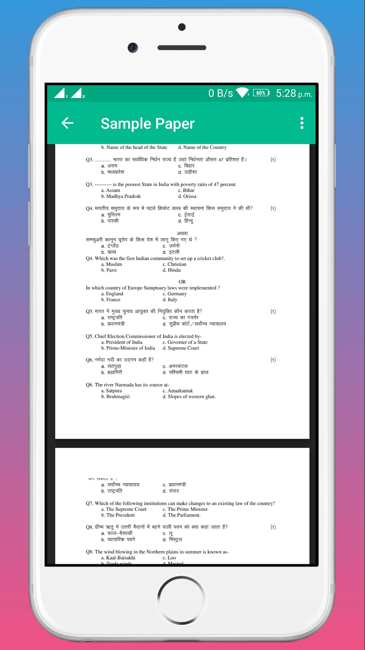 > Sample Paper for all subject of class 9