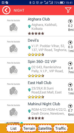 >> Detailed view of contact, ratings, pictures, address, distance and location of each place.
