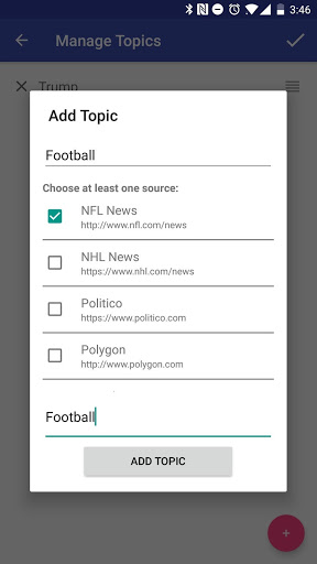 You can find all your favorites newspaper : New York Times, Associated Press, Reuters, Bleachers Report, BuzzFeed, Yahoo News, AFP, The Verge, The Canadian Press, CBC, Digital Trends, Space.com, AFP News, The Malay Mail Online, SETHLUI.com, Sky News, Mashable Tech, and more than 130 sources across the world !