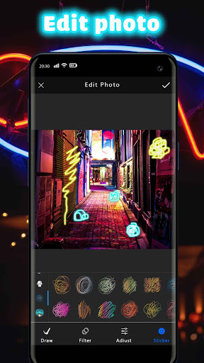 Make your photos stand out with the neon drawing effect. Feel free to choose your favorite color. Especially you can create custom colors with 3 colors. 3 colors will change to create beautiful and attractive videos.
