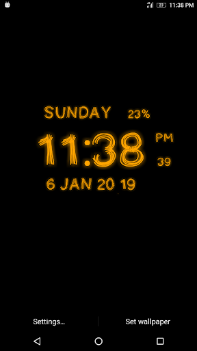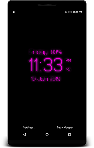Neon Digital Clock Live Wallpaper that displays current time, date and day of the week. All date and time formats are supported.