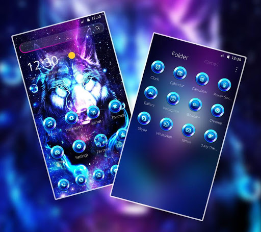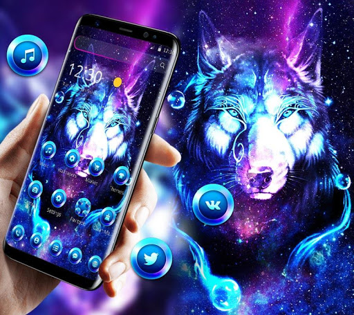 -😍Free Neon Glitter Galaxy Wolf Launcher Theme designed for Launcher users technically. Amazing cool 3D transition effects and technology will let you hardly tear yourself away from it.