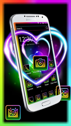 Theme Center: All of our beautiful themes are free and available on the Google Play Store. In addition to neon heart wallpaper theme our app offers you thousands of themes from other categories, namely cartoon and animal themes, graffiti themes, gold themes, pink themes, black themes, love themes, DIY and more . You can change it at any time.