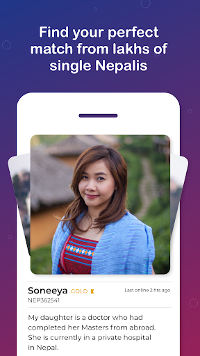 Nepali Matrimony App helps you find Nepali singles for marriage from various states in India and Nepal & also across the globe. You can find Nepali brides and grooms from different Professions, Educational Backgrounds, Regions, and Sub Castes. Our member base of Nepali bride and groom aims to provide you with the best possible match to find the love of your life. Download the free matrimony app today and find your life partner!