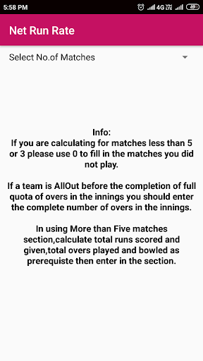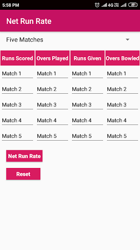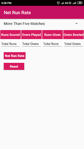 **Updated as New App from Previous Version** By using this App one can easily calculate net run rate not only for match but also for a tournament. Simple UI and Minimalistic UI