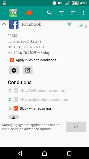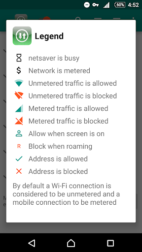 Applications and addresses can individually be allowed or denied access to your Wi-Fi and/or mobile connection.