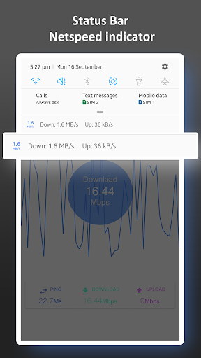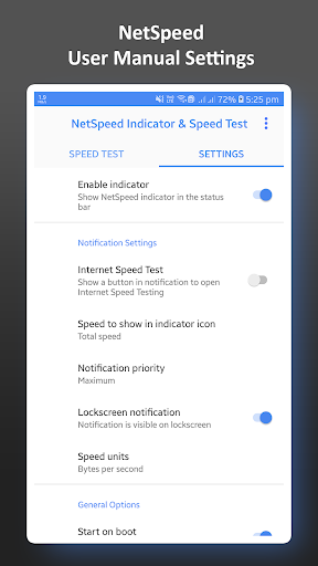 NetSpeed Indicator & Speed Test shows your current internet speed in the status bar