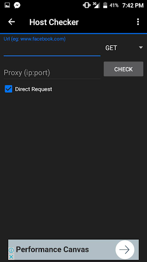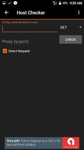 Host Checker, Share App Option, WIFI and data On/Off.