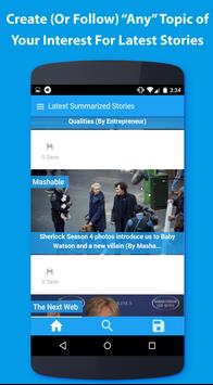 1. Discover and follow summarized articles related to absolutely any topic you might be interested in. We don't just offer you topics to select from, but you are free to give us topics to get you latest stories from.