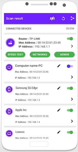 Who Is in My WiFi, as the name suggests, allows you to see all the devices that are using your private network at the moment and make you in full control over your WiFi. Who is in my Wifi recognizes the IP address, mac address and many more about the your friends that are on your WiFi, and enables you to identify hackers and spies.