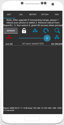 1- You can quickly detect all network user in WIFI, even when your phone has no valid IP address or not been granted use wifi internet. as long as you connected to any WIFI, netcut can work.