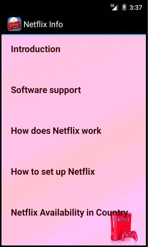 Netflix is the world’s leading subscription service for watching TV episodes and movies on your phone. This application is about netflix information, how is work, how to set-up, what software does support for netflix and many more. So get this app and you will know more information about Netflix.