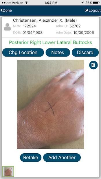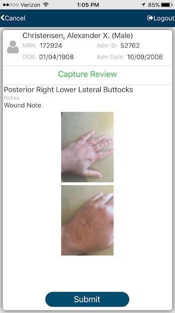 Images are not stored on the device’s camera roll. The application can be used online or offline in a secure and encrypted manner. Images are uploaded to myUnity (electronic health record) as a PDF. Profile pictures are uploaded as a JPEG and populated to the resident/patient's facesheet. All care settings can use Image Capture.