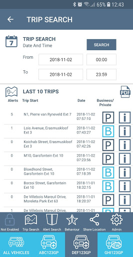 - Request PDF trip and alert reports from the app