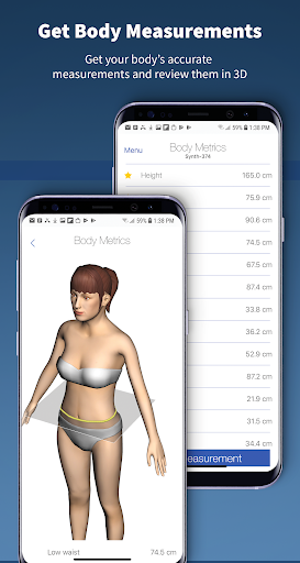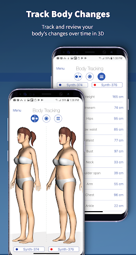- Track how your body changes in 3D. You can compare two bodies with full side-by-side  view, morphing animation and dimension comparison - all in 3D on your device.