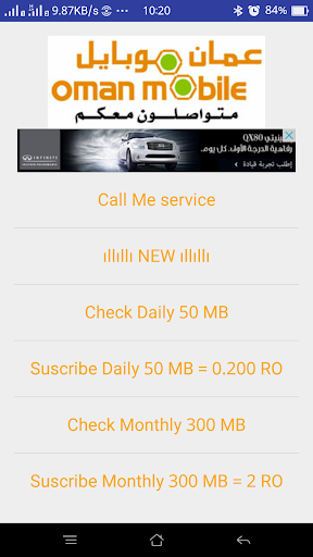 Network Operator Services Oman is an Omani app built to fasten the process of check, subscribe and cancel Internet subscription for your network provider. You can also transfer money to other accounts. Moreover, you can recharge your card with money. No need to remember all service codes like transferring money code or subscribing to internet codes. You simply click on the service you want from the list.