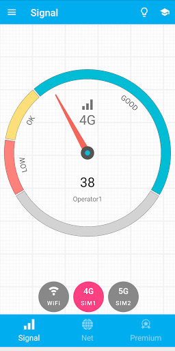• Signal meter 2G, 3G, 4G, 5G, WiFi