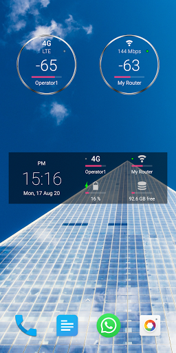 • Home screen signal widgets 6 types including signal, connectivity/latency, network, battery, clock and storage