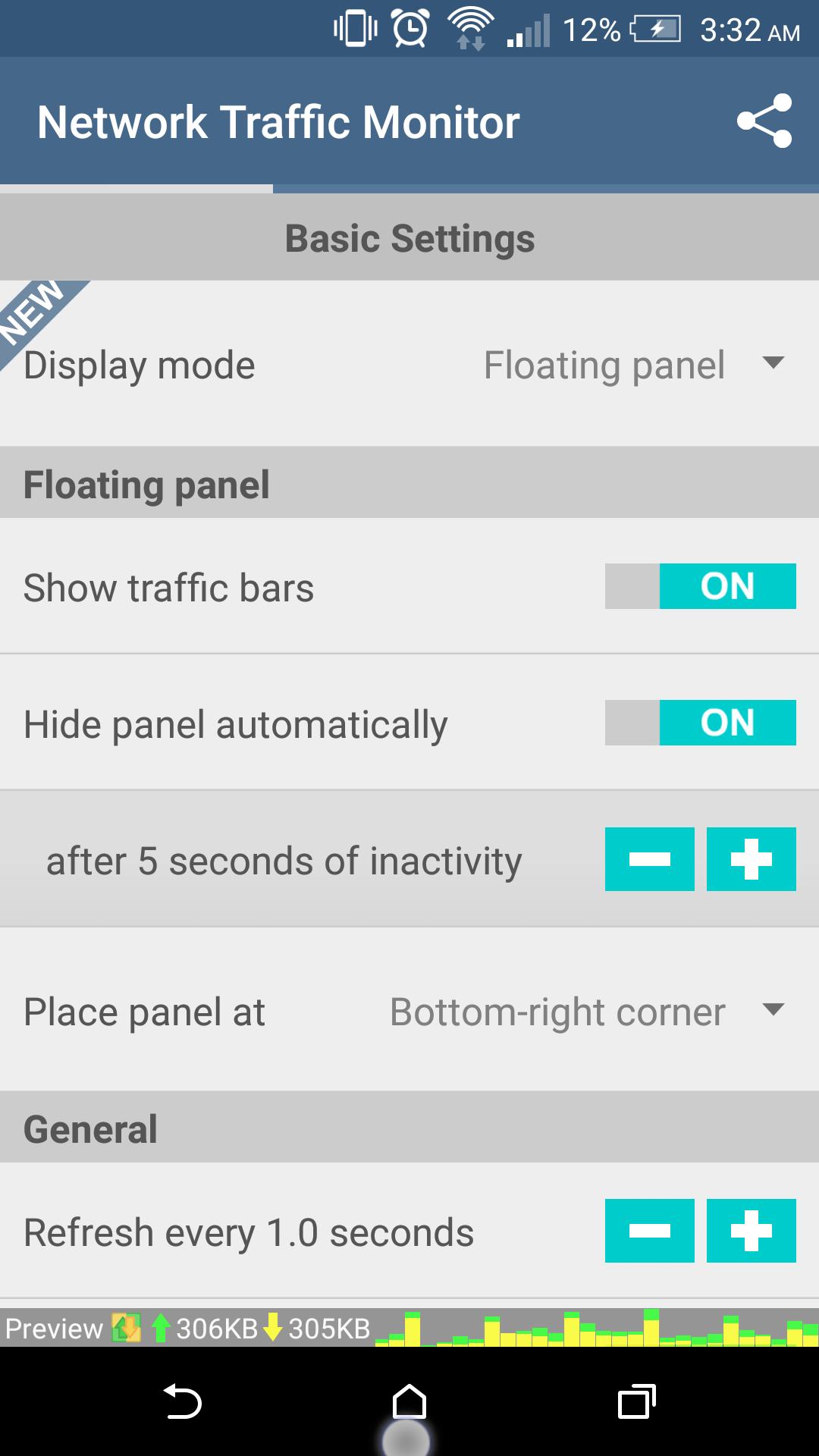 • Hide panel while no traffic