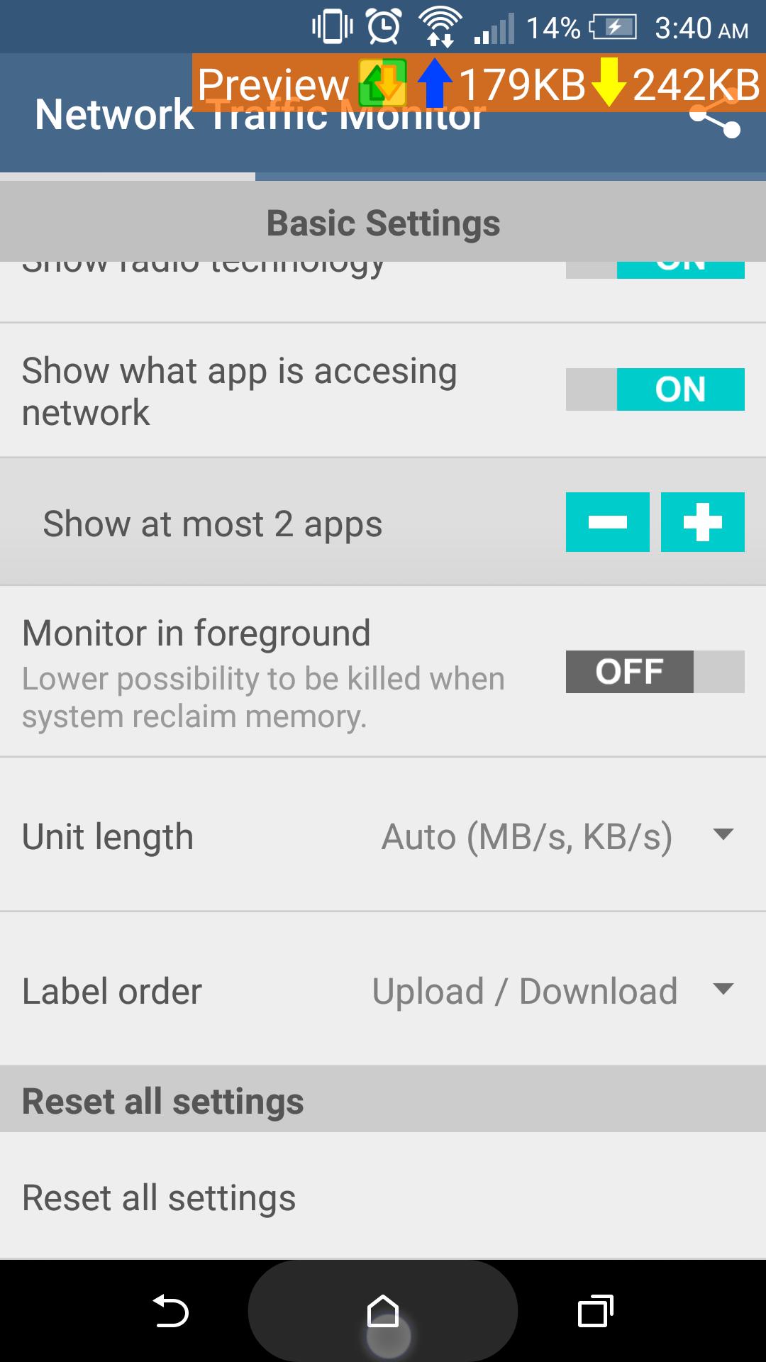 • Monitor real time data upload/download speed