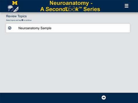 The Neuroanatomy SecondLook™ Lite application is a study aid that provides a series of neuroanatomical images for users to self-test their level of knowledge and ability to recognize structures within the human central nervous system. This application was developed with the learner in mind, especially medical, dental, nursing, and other health sciences students, and lab professionals. The SecondLook™ Lite Neuroanatomy sample application is free to download and contains representative slides from each of the available twelve topics. The complete slide sets, covering Gross Neuroanatomy, the Spinal Cord, Ascending and Descending Pathways, Cranial Nerves, the Diencephalon, Forebrain, Brain Stem, the Limbic System, Auditory/Vestibular System, Visual System, and Neurohistology, may be purchased as a complete mobile application. By taking a "Second Look" at these images, users are able to quickly self-evaluate and test their knowledge of the human central nervous system in order to identify gaps and to be better prepared for tests. This mobile application will also serve as an excellent review tool to prepare for licensing examinations.