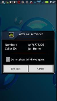 * Popup a dialog window after each call that is not in the safe list, so you can add the number to the safe list directly without opening the app.