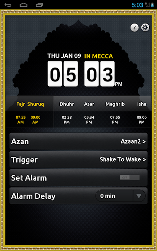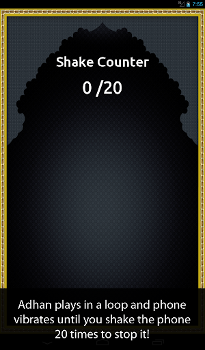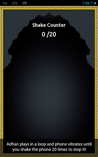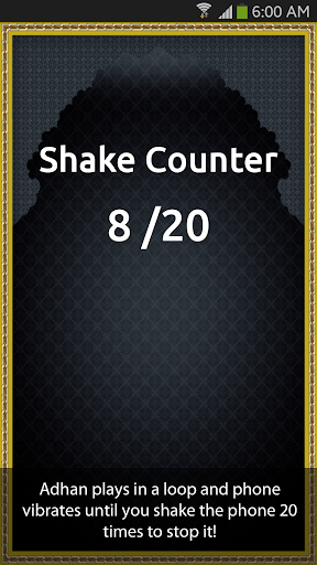 2. Shake to wake: if you choose this option you will have to shake your phone 20 times before the adhan shuts off.