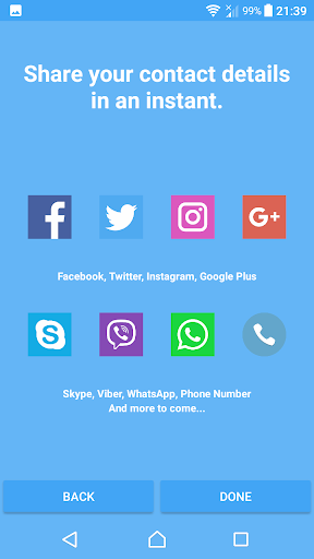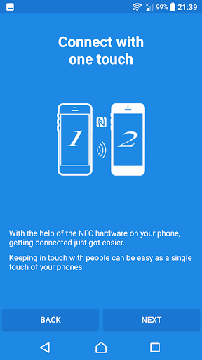 Use the NFC or Bluetooth on your phone to share your contact details with new friends you meet. Just let your phones touch and get the details you need. Yes, it's that easy.