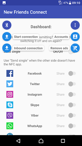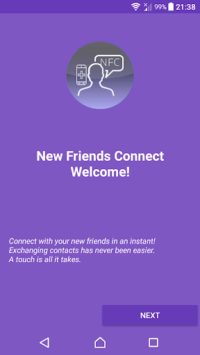 - New Friends Connect is an Android Application that lets you connect with anyone that has Bluetooth or NFC Hardware (Near field communication) on the device.