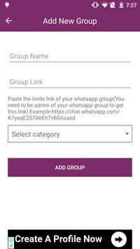 There is no requirement to create a profile. Just download the Groups for WhatsApp app and browse groups by categories