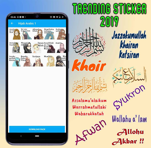 Alhamdulillahi robbil a_lamien, application New Islamic WAsticker for WhatsApp Sticker application that can be used for Android or smartphone is available, a free Sticker application that is compatible with WhatsApp Messenger. WhatsApp Sticker is used to send and share Sticker messages to your friends and family in the form of emotion to make expressive, switch from SMS / MMS to WhatsApp Sticker messages (cannot be used for Facebook Lite, Facebook, Intragram, Twiter, Messenger, Messenger Lite, TikTok, Telegram). Sending a beautiful, fun, cool, popular, good, interesting, funny, funny cute, cute imotion Sticker sticker to send Sticker messages with a theme of daily conversation for a Islam, Muslim, Islamic, Muslimah, Arabic, Arabic text so that it will make a good habit.